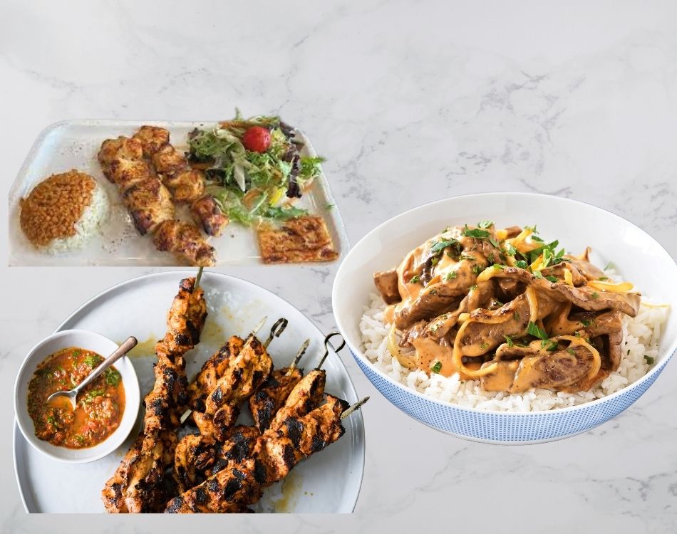 Chargrilled, marinated chicken and lamb shish, served with bulgur rice, salad